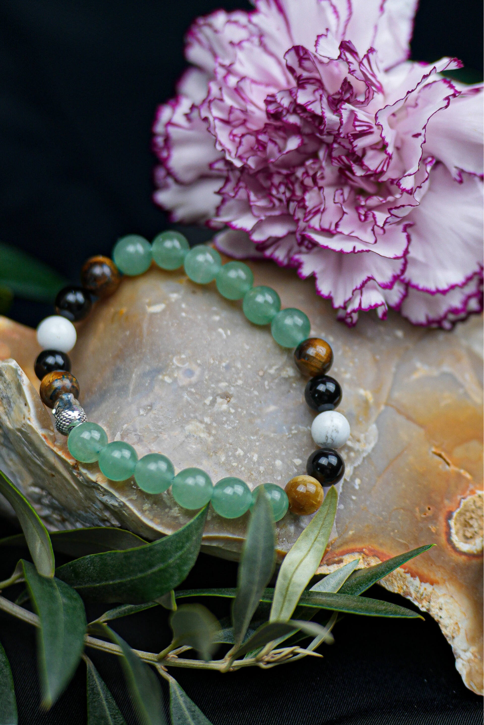 Bracelet Oeil du tigre, Obsidienne, Aventurine et Howlite